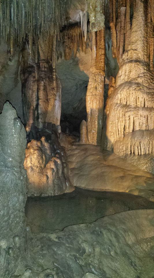 I am so glad we did the Cave tour even tho we had to go separately, it was awesome and well worth $8 AND Brenda the gift shop manager watched Ziva in between, Buds tour left at 11am and mine at noon. Buds tour ran late.. got pics of her and Ziva at end. WEAR GOOD shoes because it is slippery inside, I had my motorcycle boots on but they have awesome treads. Also be prepared to walk bent over in places. You can easily bang your head if you are not careful.